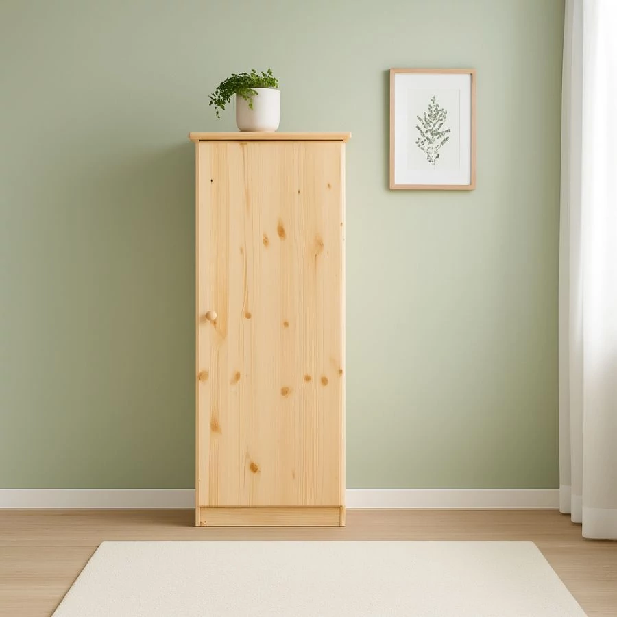 Kiefernholz Kommode, schmal, 1-türig, 53x128x49cm, natur-lackiert