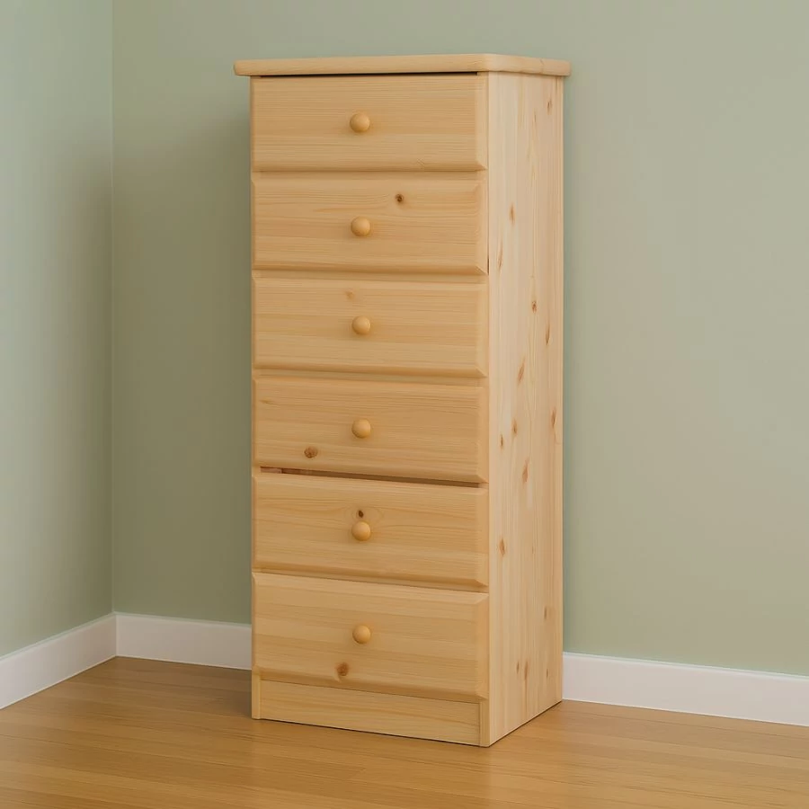 Kiefernholz Kommode, schmal, 6-schubladig, 53x128x49cm, natur lackiert