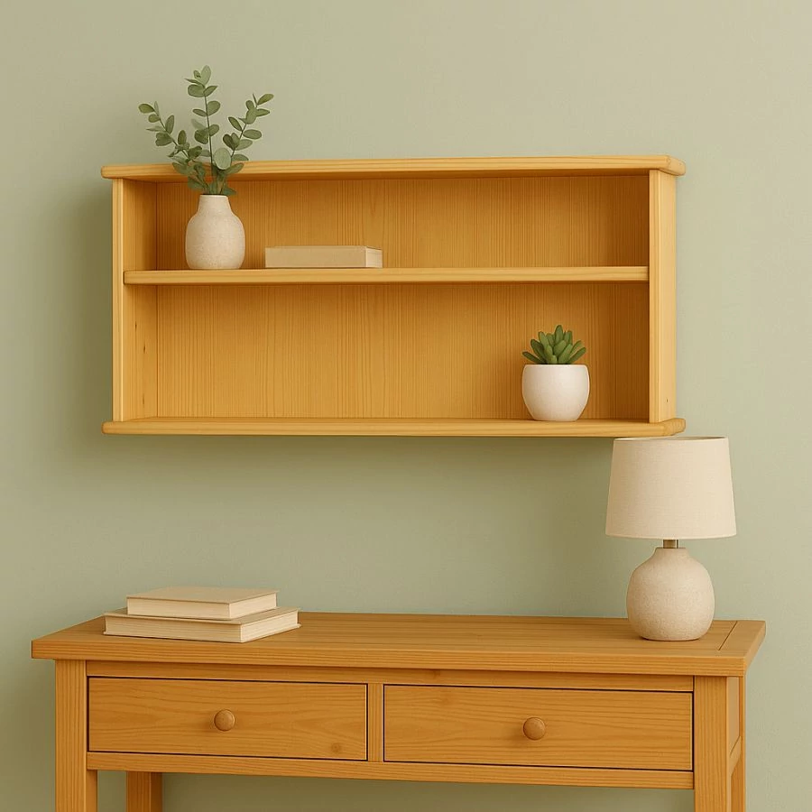 Kiefernholz Kommodeaufsatzt, schmal, mit 1 Regal, 128x53x30cm, natur-lackiert